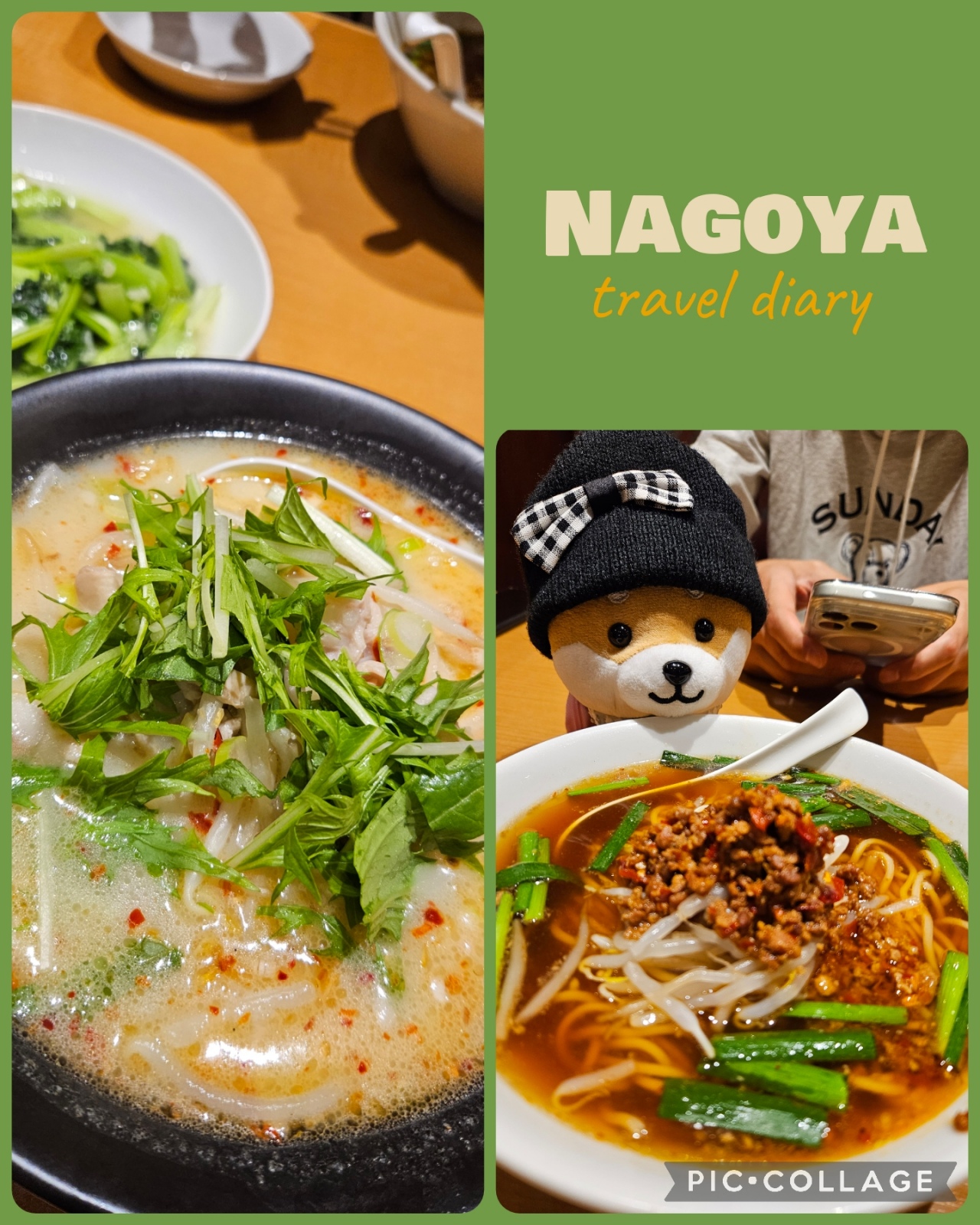 🌸花よりちろぺん🐕💕名古屋🏯伊勢⛩️鳥羽🌊3泊4日の春の旅ちろ探しC 駅でちろぺん探しをした後はホテルにチェックイン🏢夜は台湾料理の味仙へ🍜台湾ラーメンとホルモンラーメンと青菜炒めを注文🍜🍜🥬みんなオススメしてるから行ってみたかったんだけど想像以上に激辛🔥🔥🌶味は凄く美味しいのになかなか食べ進めない😵😵😵たくでさえ汗ダラダラ笑スープは飲み干してないけどなんとか完食=͟͟͞͞ (@× н×)🔥🔥一生口の中が辛い感じꉂ🤣𐤔🏯うまいもん通り 太閤通口🏯味仙