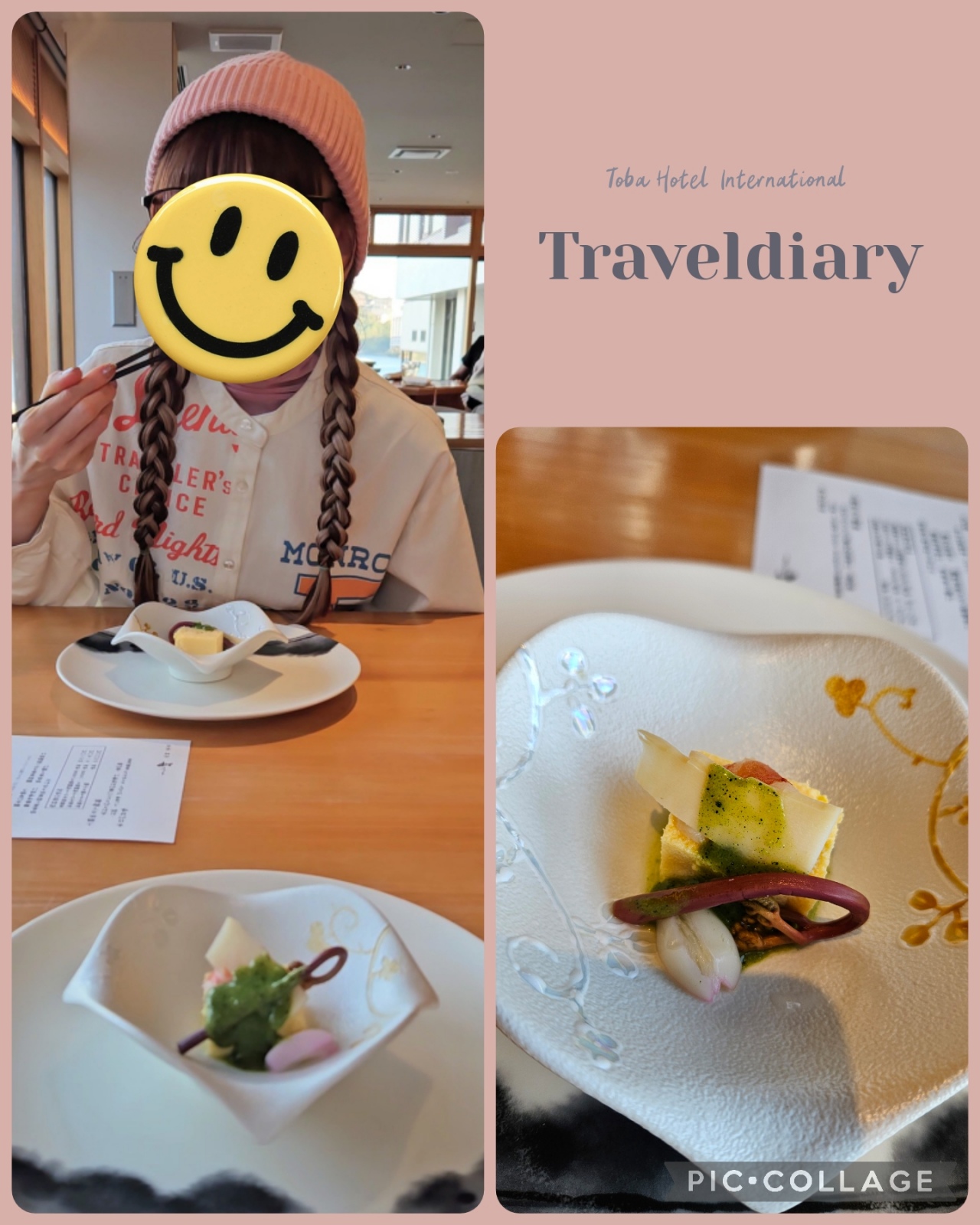🌸花よりちろぺん🐕💕名古屋🏯伊勢⛩️鳥羽🌊3泊4日の春の旅ちろ探しP おかげ横丁からずっと食べてるから全然お腹が空いてない状態だったんだけど前菜を1口食べたら...美味ーーーーーー♡食欲爆増☆復٩(ˊᗜˋ*)و活☆